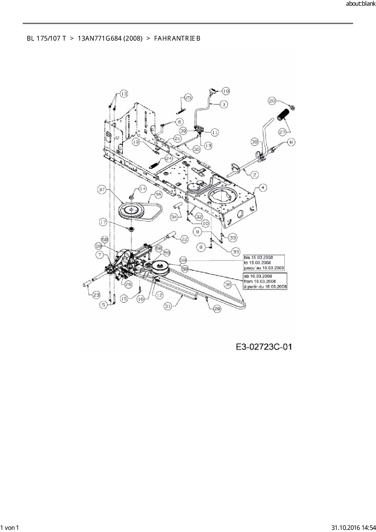 Ersatzteile für Rasentraktor Bolens BL 175/107 T aus der Zeichnung Fahrantrieb: