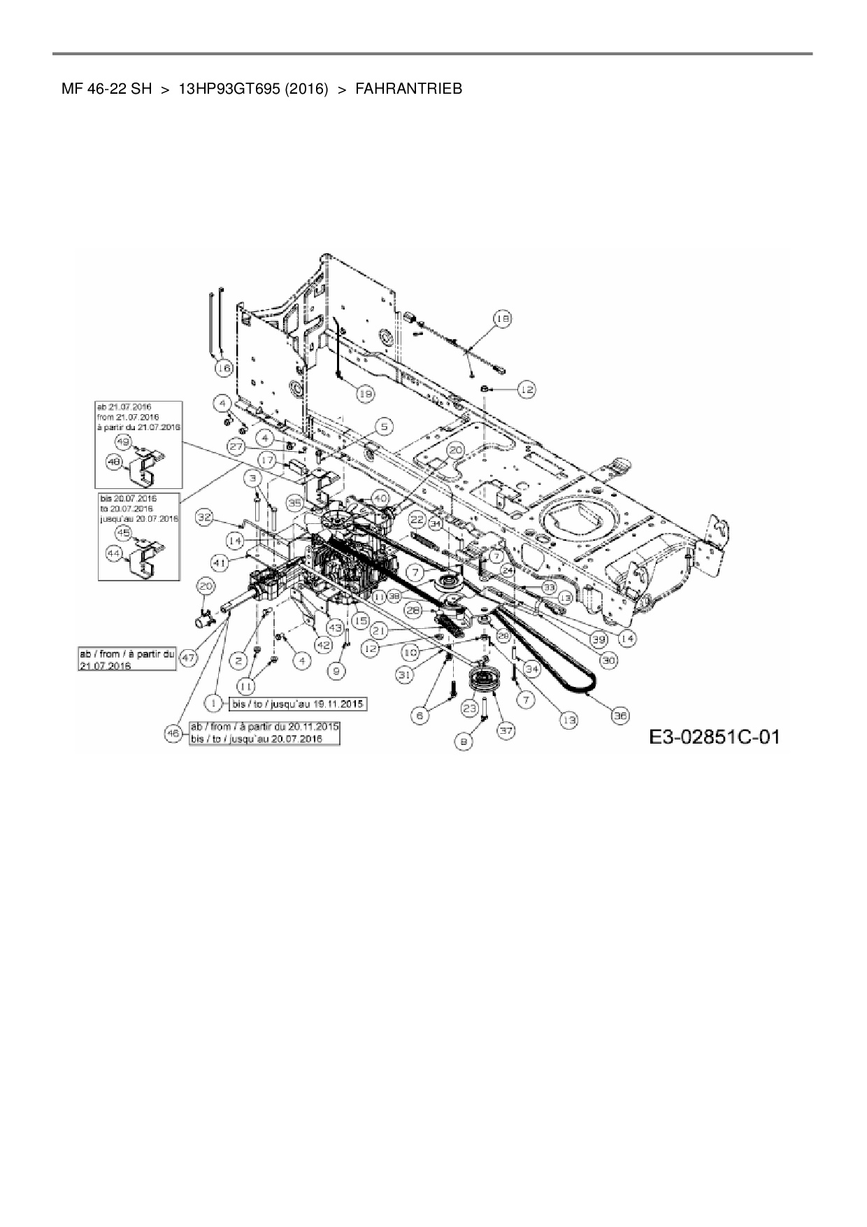 Zeichnung für Massey Ferguson Rasentraktor MF 46-22 SH mit der Geräte-Artikelnr. 13HP93GT695 ab Baujahr 2016: