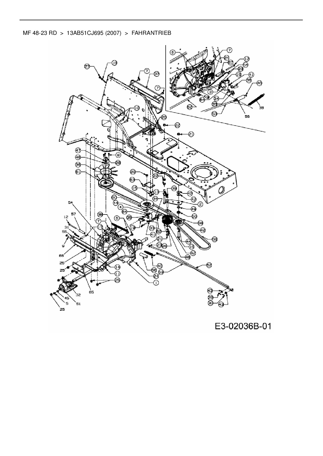 Zeichnung für Massey Ferguson Rasentraktor MF 48-23 RD mit der Geräte-Artikelnr. 13AB51CJ695 ab Baujahr 2007: