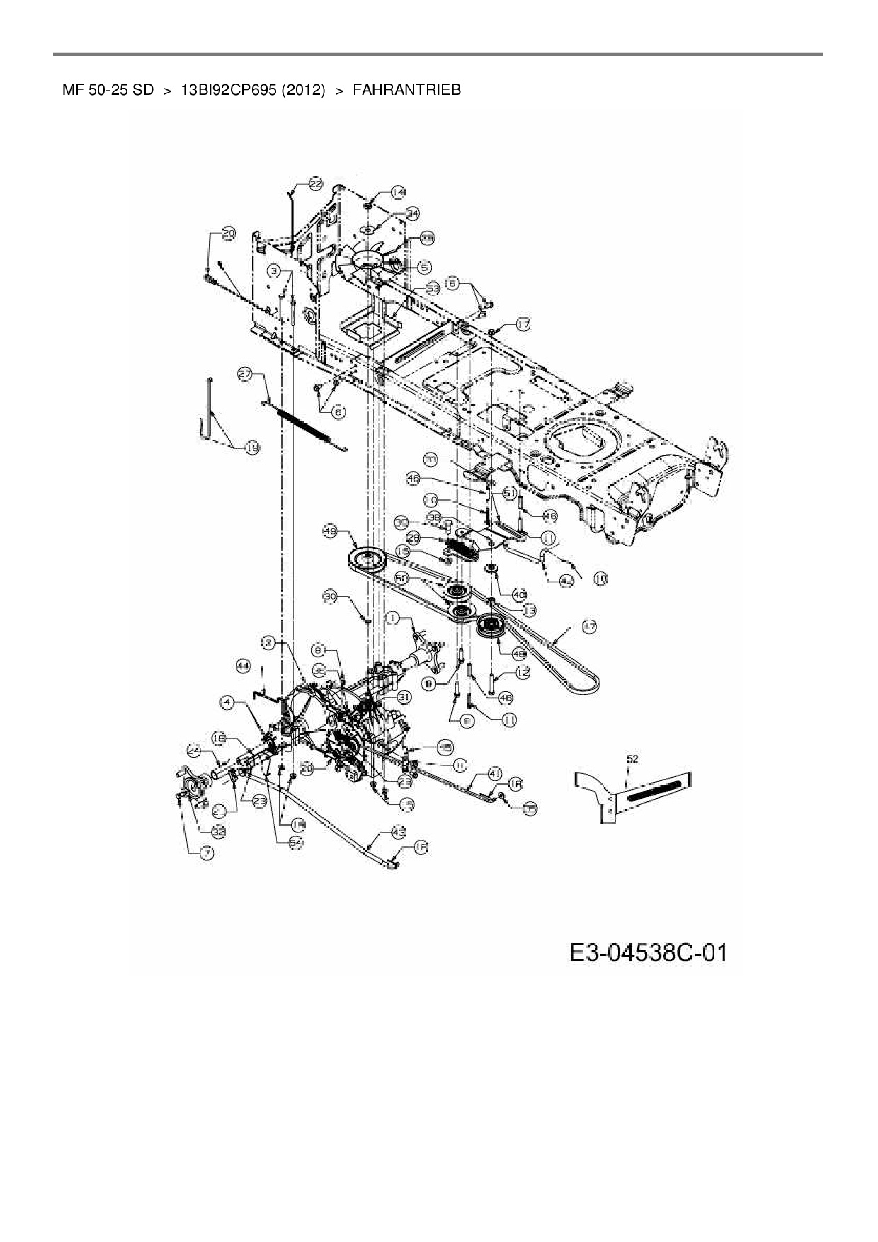 Zeichnung für Massey Ferguson Rasentraktor MF 50-25 SD mit der Geräte-Artikelnr. 13BI92CP695 ab Baujahr 2012: