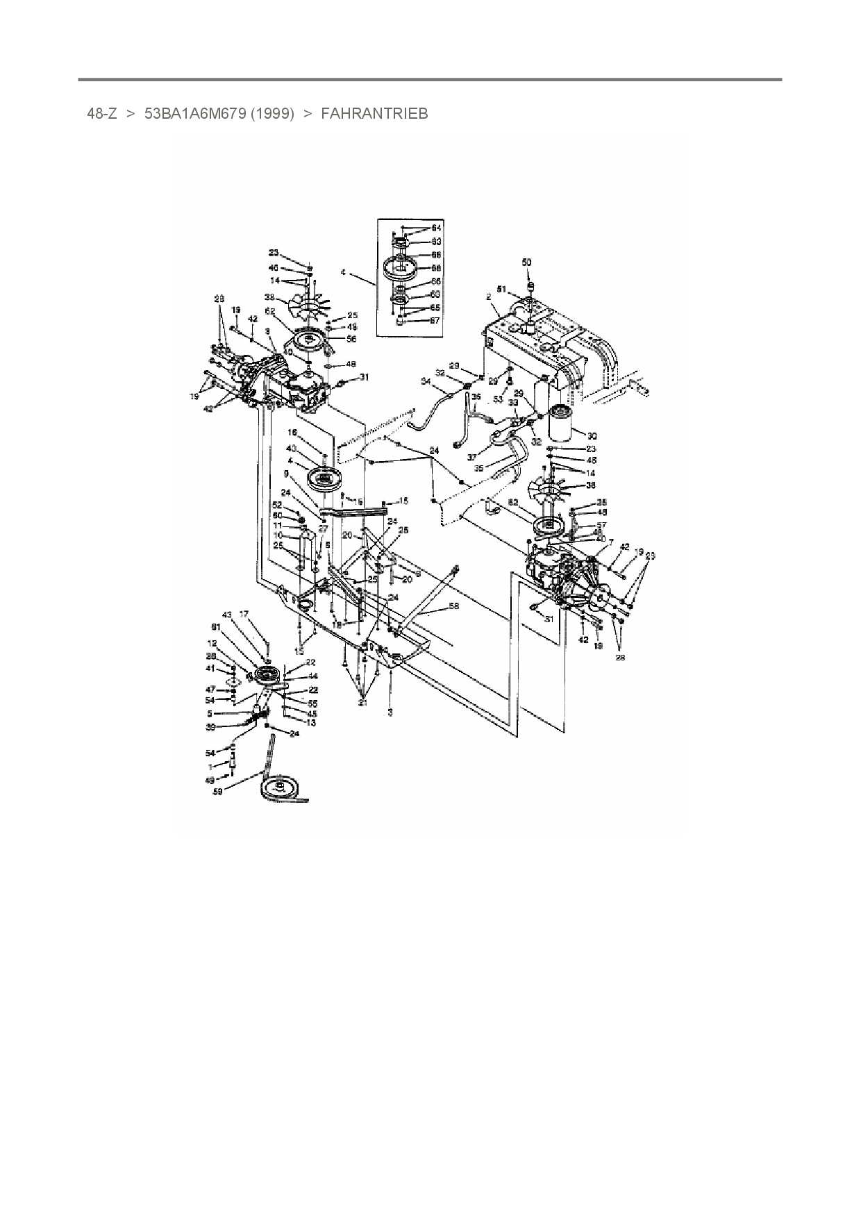 Zeichnung für White Zero Turn 48-Z mit der Geräte-Artikelnr. 53BA1A6M679 ab Baujahr 1999: