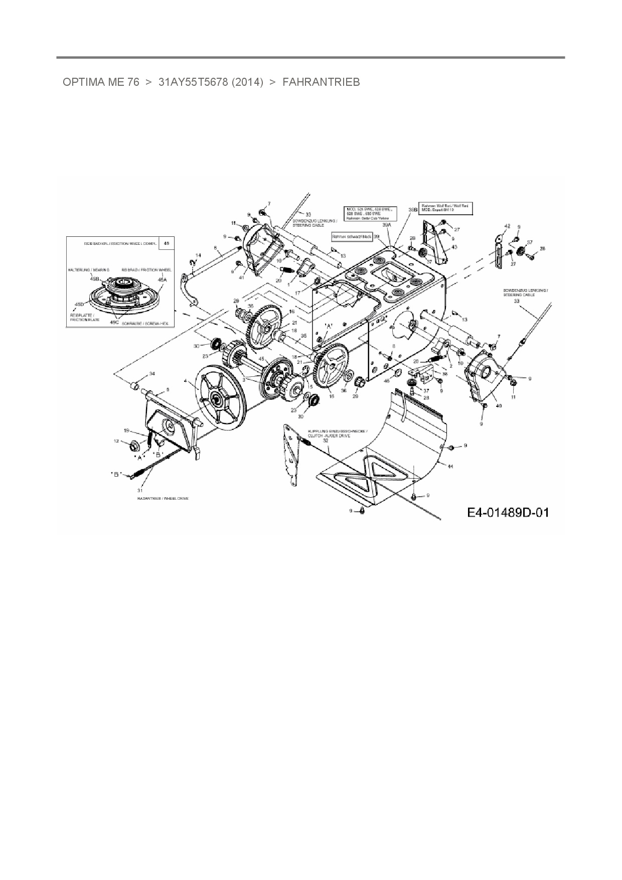 Ersatzteile für Schneefräse MTD Optima ME 76 aus der Zeichnung Fahrantrieb: