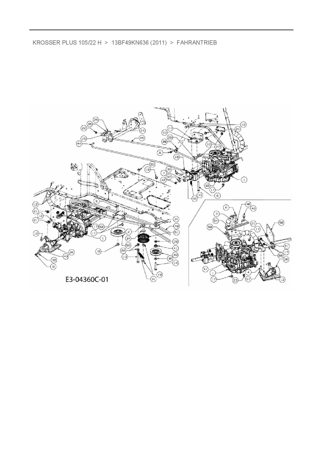 Zeichnung für Oleo-Mac Rasentraktor Krosser Plus 105/22 H mit der Geräte-Artikelnr. 13BF49KN636 ab Baujahr 2011: