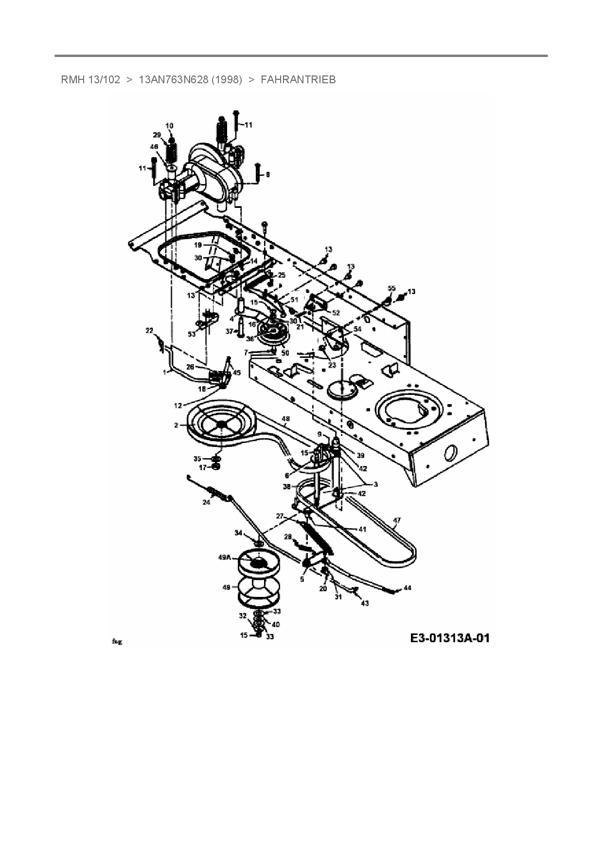 Ersatzteile für Rasentraktor Raiffeisen RMH 13/102 aus der Zeichnung Fahrantrieb: