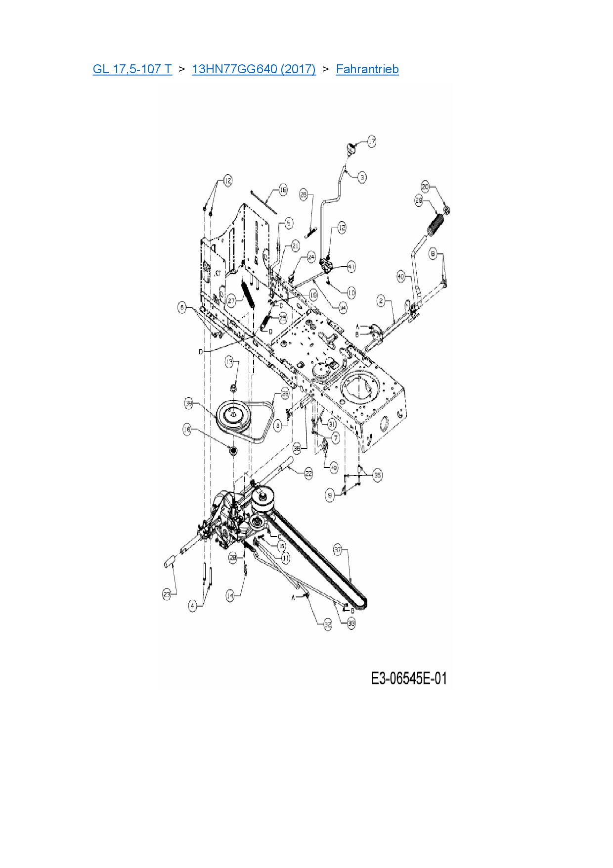 Ersatzteile für Rasentraktor Gartenland GL 17,5-107 T aus der Zeichnung Fahrantrieb: