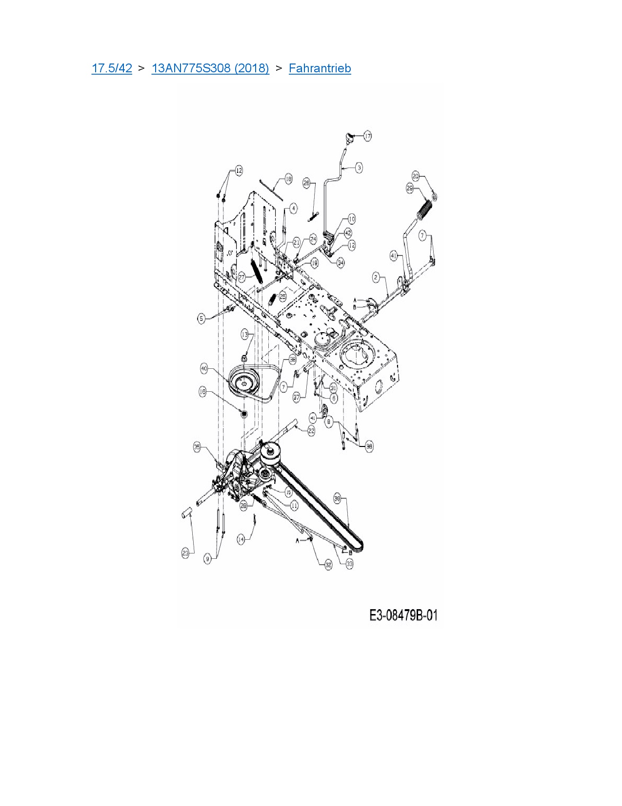 Ersatzteile für Rasentraktor MTD 17.5/42 aus der Zeichnung Fahrantrieb: