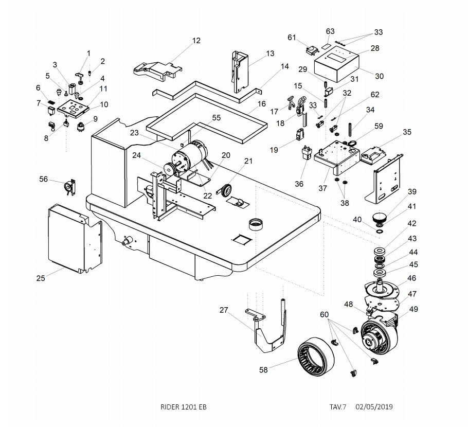 Hier finden Sie alle Ersatzteile von Erco Kehr- und Saugmaschinen Aufsitz-Kehrsaugmaschinen ER-RIDER-1201ES aus der Zeichnung Fahrantrieb: