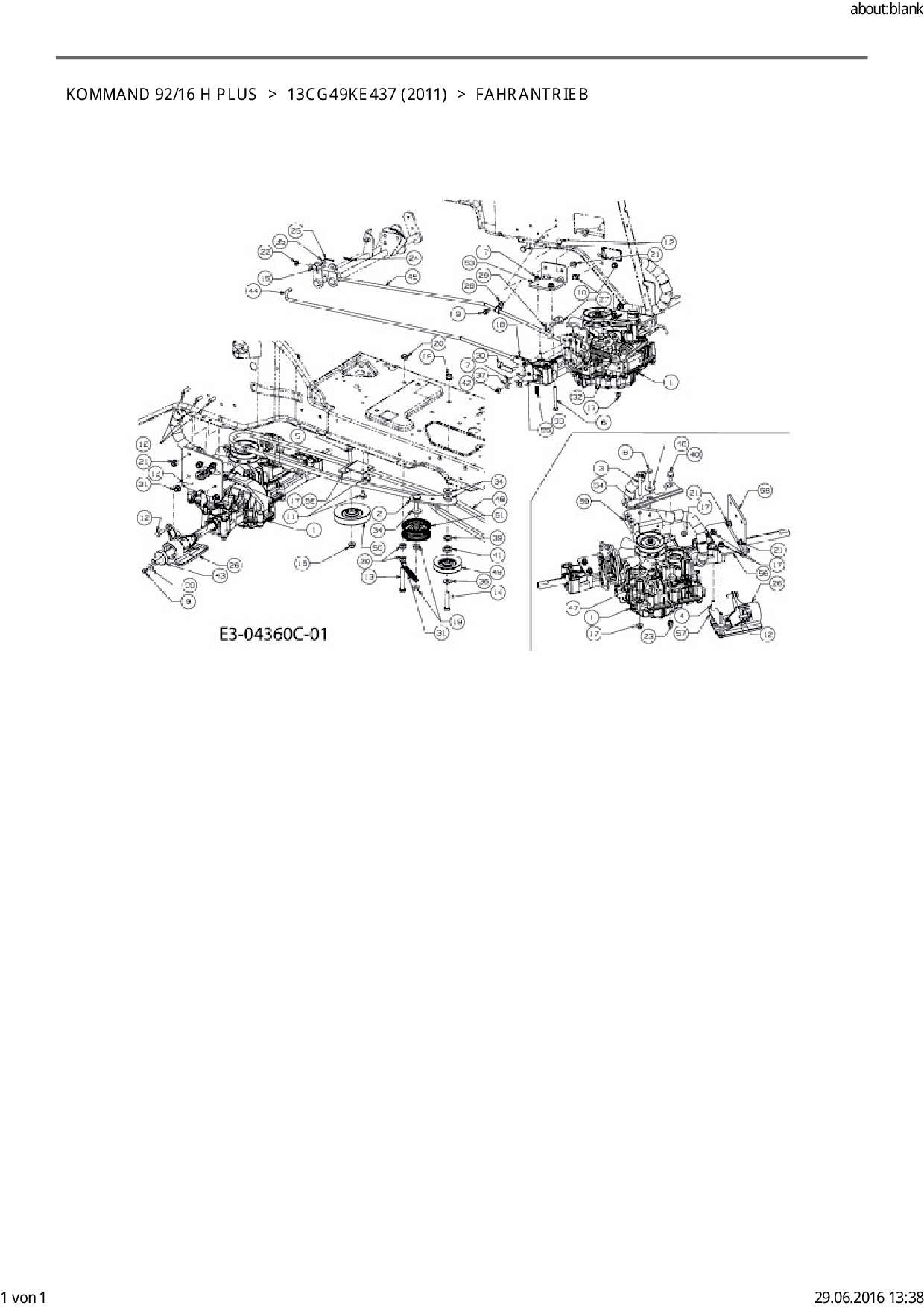 Zeichnung für EFCO Rasentraktor Kommand 92/16 H Plus mit der Geräte-Artikelnr. 13CG49KE437 ab Baujahr 2011:
