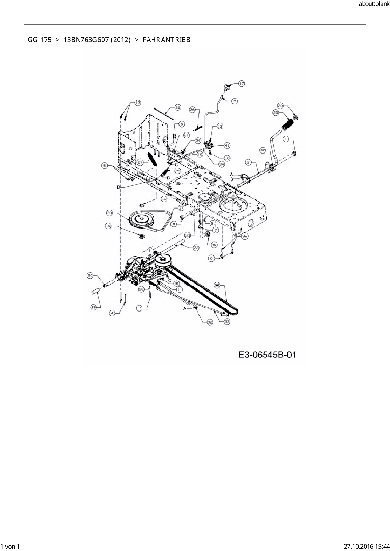 Zeichnung für Blisar Rasentraktor GG 175 mit der Geräte-Artikelnr. 13BN763G607 ab Baujahr 2012:
