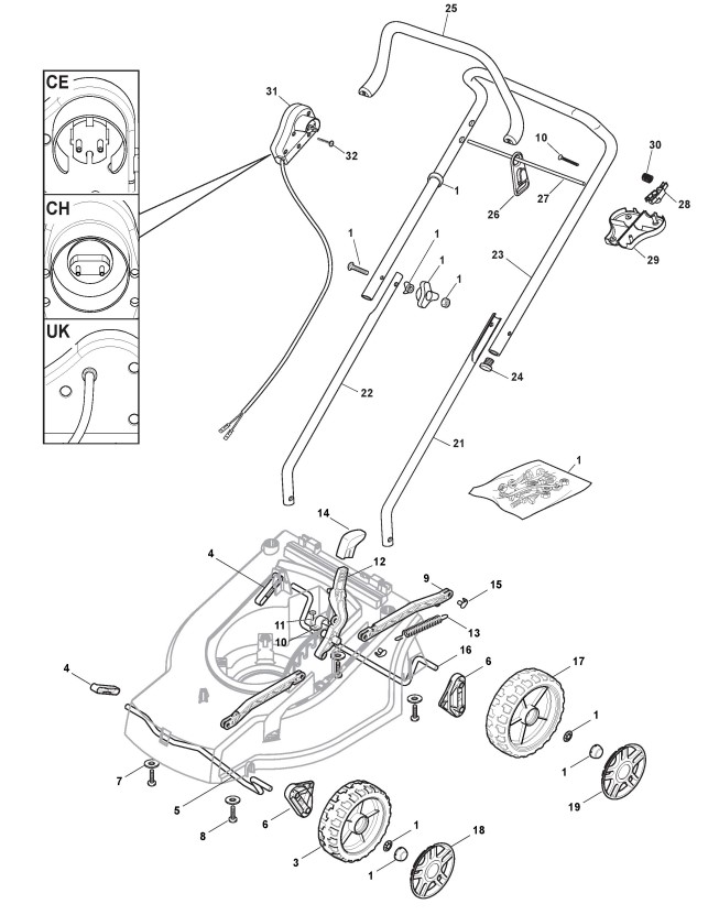 Hier finden Sie alle Ersatzteile von Castelgarden Elektrorasenmäher XP 36 E (Geräte ID 294360663/C12) ab 2012 aus der Zeichnung Fahrgestell, Holm, Oberteil: