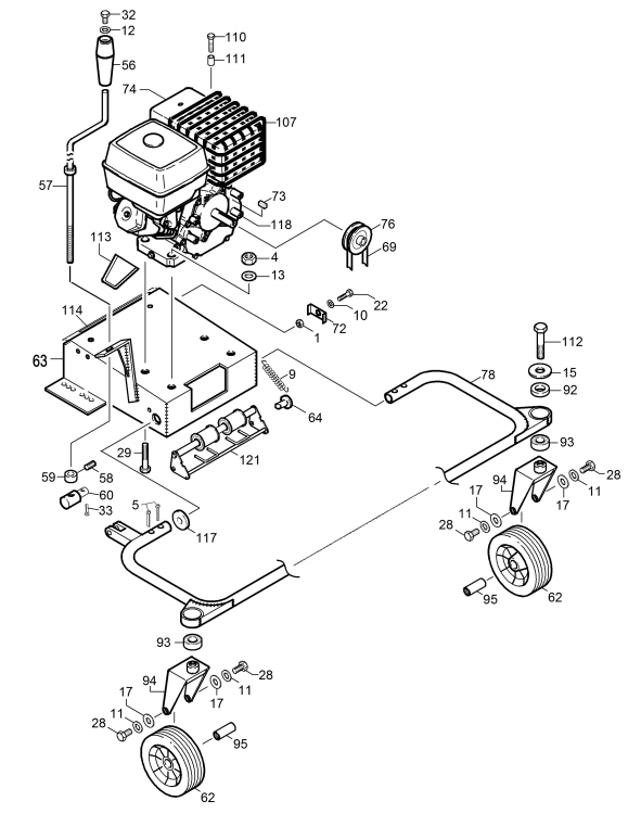 Zeichnung von Erco Laub- und Abfallsauger ES-400er Serie ES-400HOPRO-03 Fahrgestell, Motor: