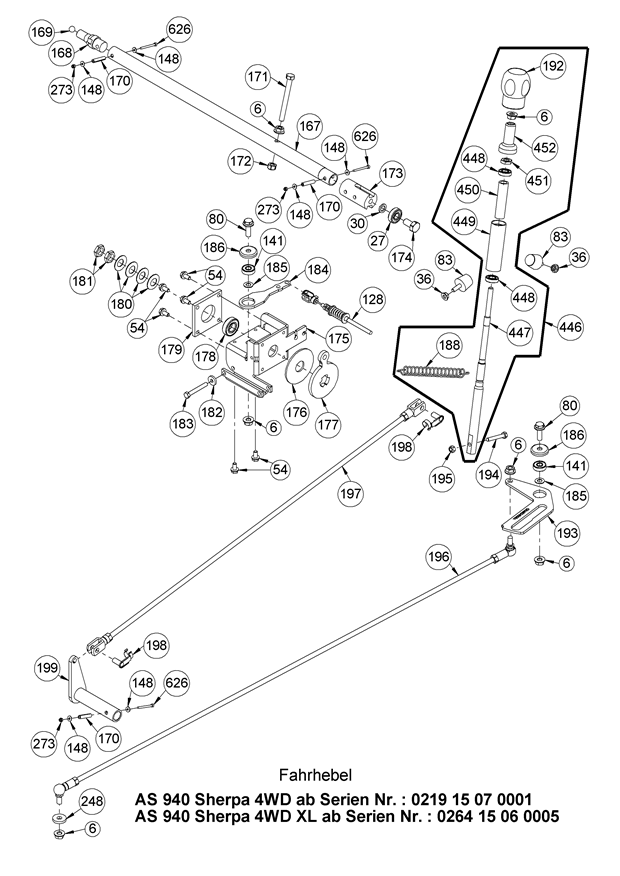 Hier finden Sie alle Ersatzteile von AS-Motor Aufsitzmäher AS 940 Sherpa 4WD Adventure B&S ab FNr. 035619050001 aus dem Zeichnungsblatt Fahrhebel: