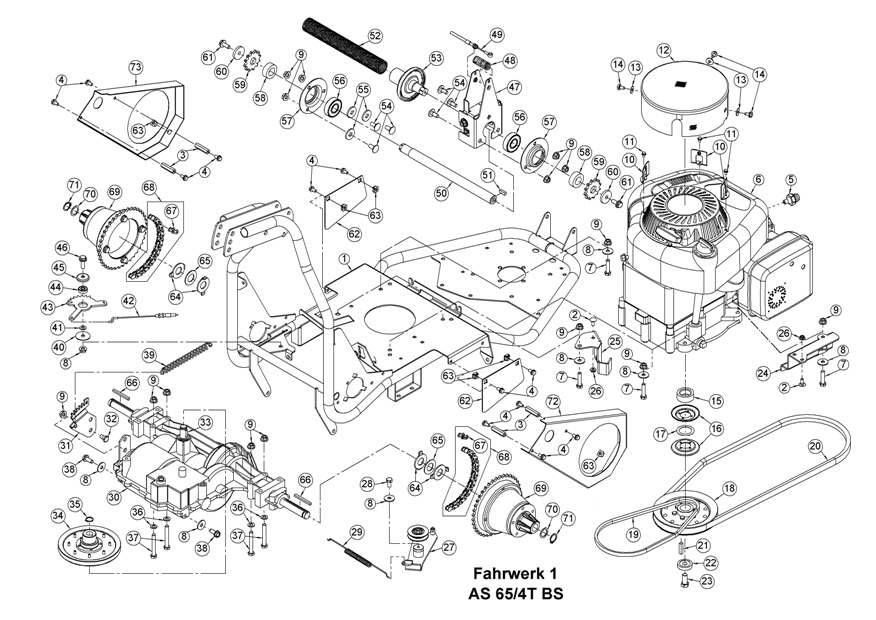 Hier finden Sie alle Ersatzteile von AS-Motor Allmäher AS 65 4T B&S und AS 65/4T BS ab FNr. 021308090001 aus dem Zeichnungsblatt Fahrwerk Abb.1: