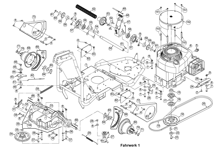Hier finden Sie alle Ersatzteile von AS-Motor Allmäher AS 65 4T B&S und AS 65/4T BS ab FNr. 021316050001 aus dem Zeichnungsblatt Fahrwerk Abb.1: