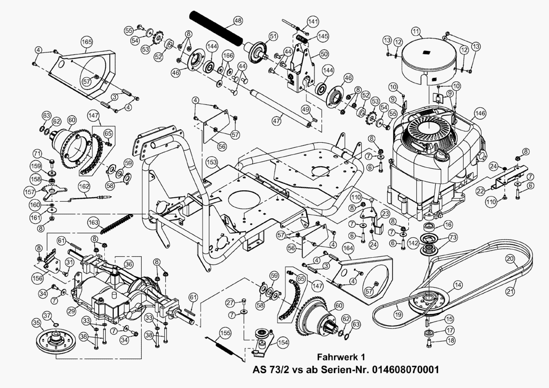 Zeichnung von AS-Motor Allmäher AS 73 4T B&S und AS 73/2 vs ab FNr. 014608070001: