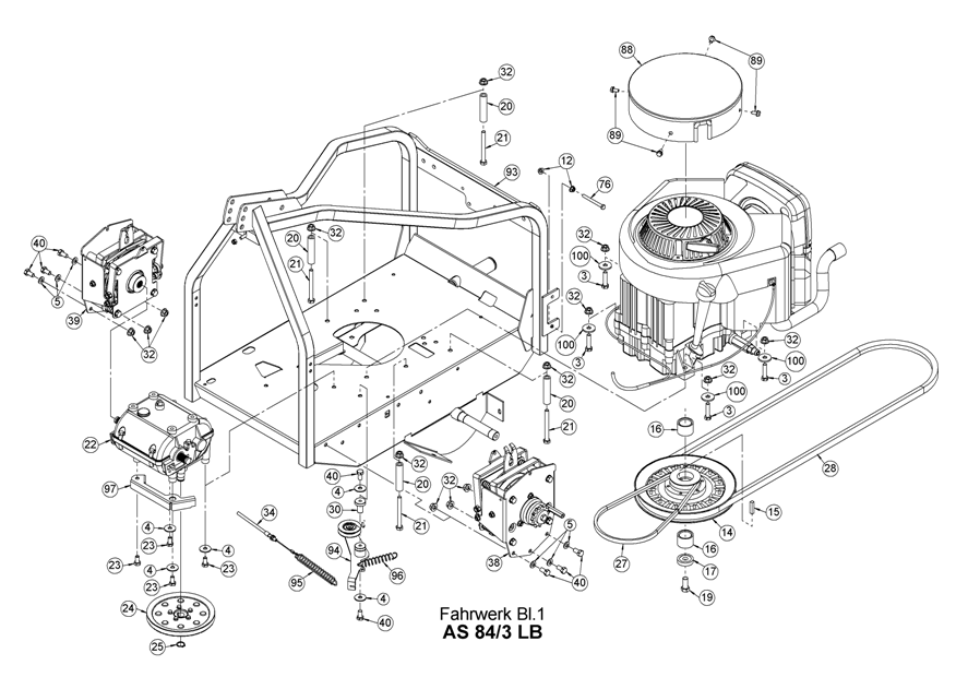 Hier finden Sie alle Ersatzteile von AS-Motor Allmäher AS 84 Mulchmeister 4T B&S und AS 84/3 LB ab FNr. 026714010001 aus dem Zeichnungsblatt Fahrwerk Abb.1: