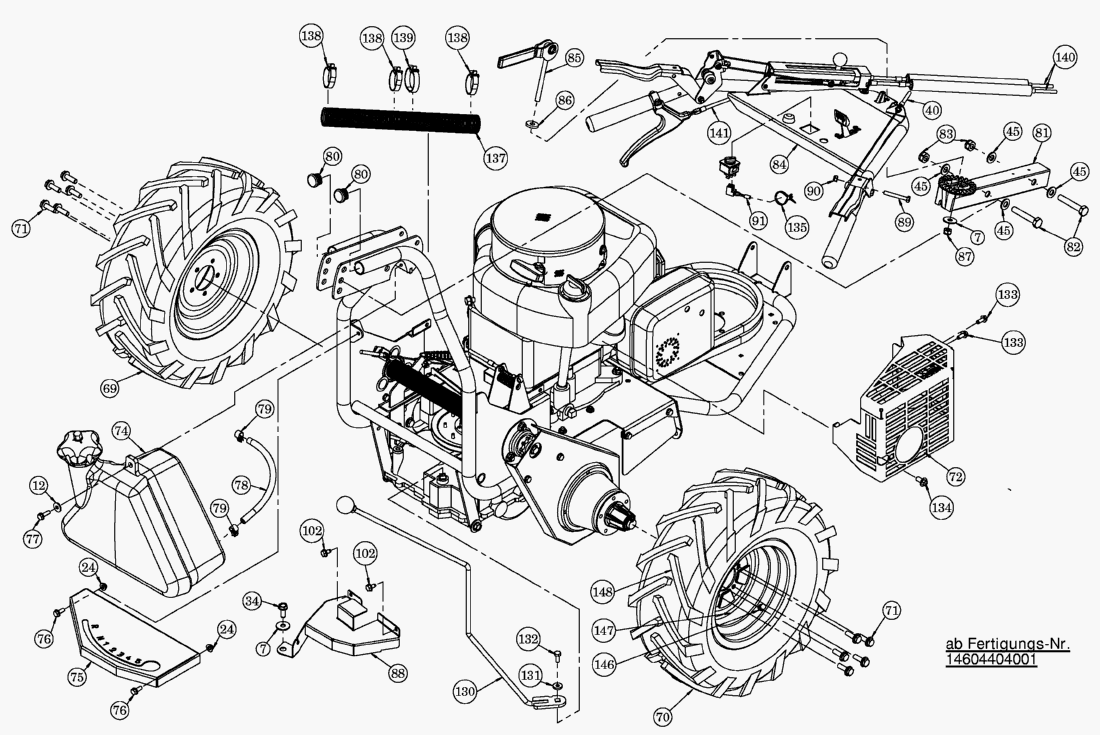 Hier finden Sie alle Ersatzteile von AS-Motor Allmäher AS 73 4T B&S und AS 73/2 vs ab FNr. 014604404001 aus dem Zeichnungsblatt Fahrwerk Abb.2: