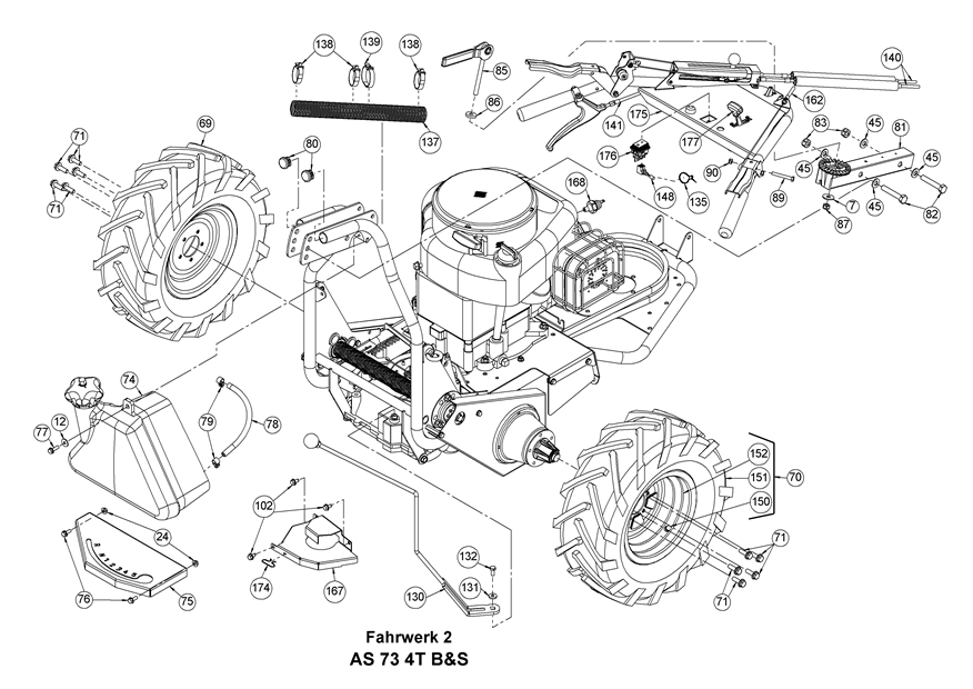 Hier finden Sie alle Ersatzteile von AS-Motor Allmäher AS 73 4T B&S und AS 73/2 vs ab FNr. 014617030001 aus dem Zeichnungsblatt Fahrwerk Abb.2:
