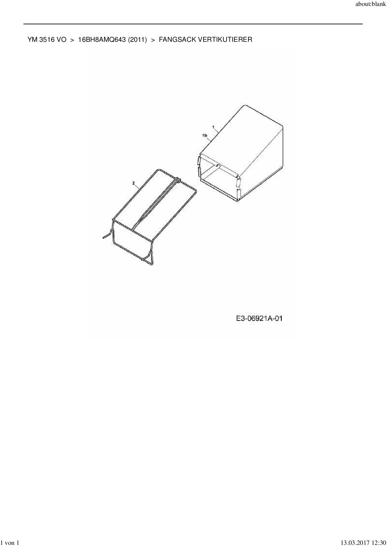 Ersatzteile für Motorvertikutierer Yard-Man YM 3516 VO aus der Zeichnung Fangsack Vertikutierer:
