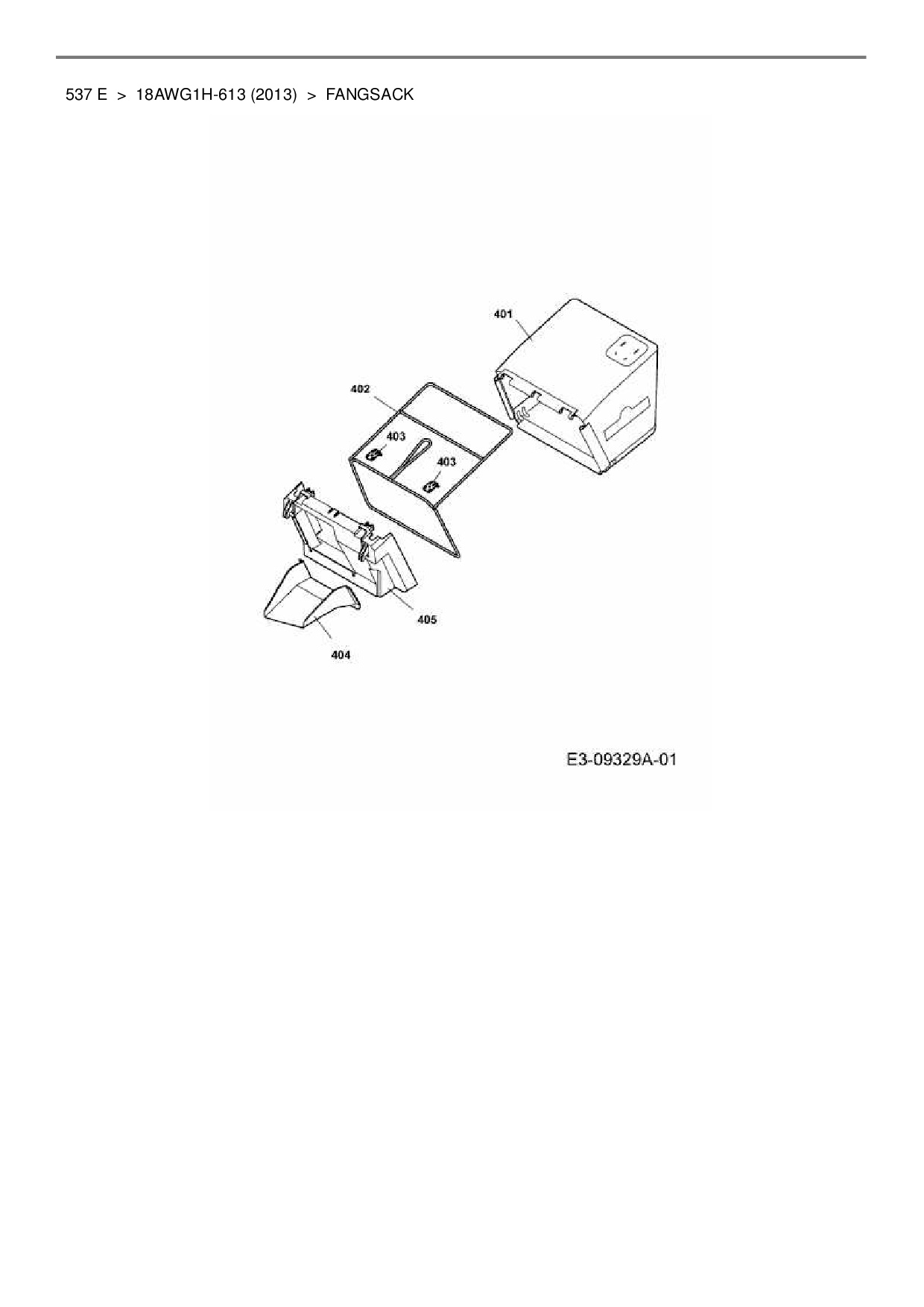 Ersatzteile für Elektromäher Wolf-Garten 537 E aus der Zeichnung Fangsack: