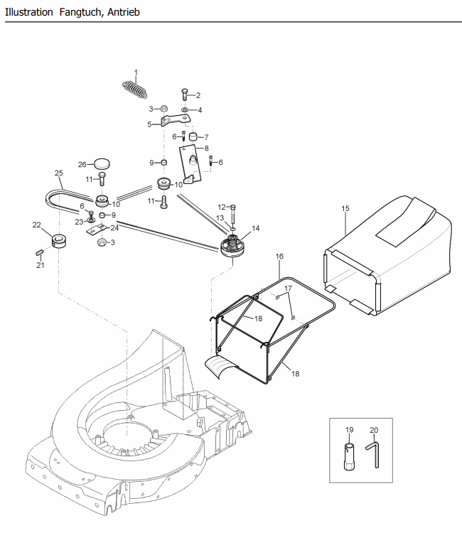 Zeichnung Sabo Rasenmäher Profi-Rasenmäher 54-PRO VARIO EDV-NR.SA1339 Fangtuch, Antrieb: