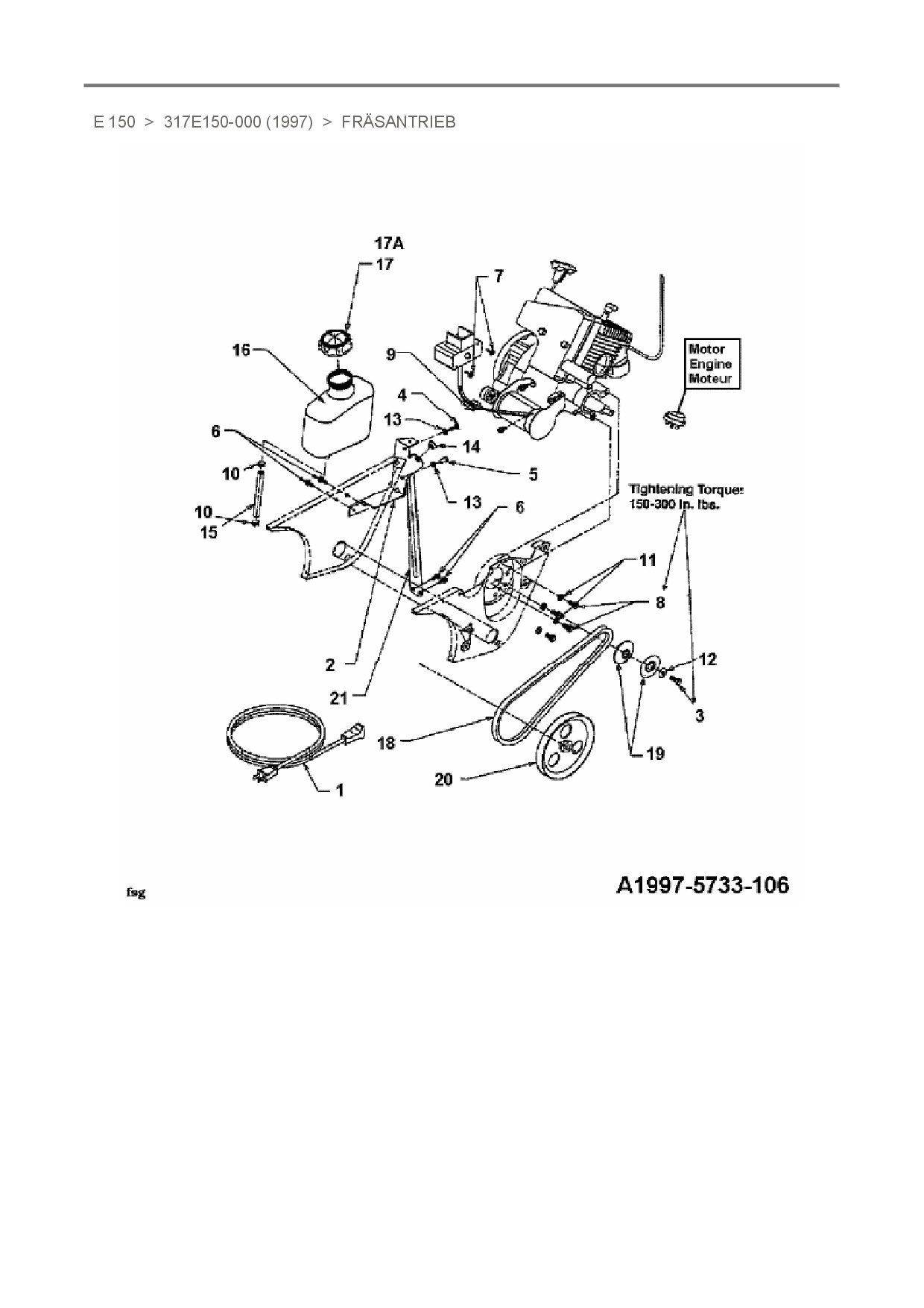 Ersatzteile für Schneefräse MTD E 150 aus der Zeichnung Fräsantrieb: