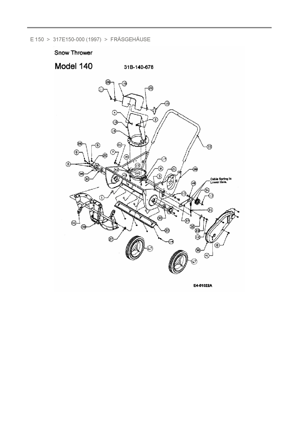 Ersatzteile für Schneefräse MTD E 150 aus der Zeichnung Fräsgehäuse: