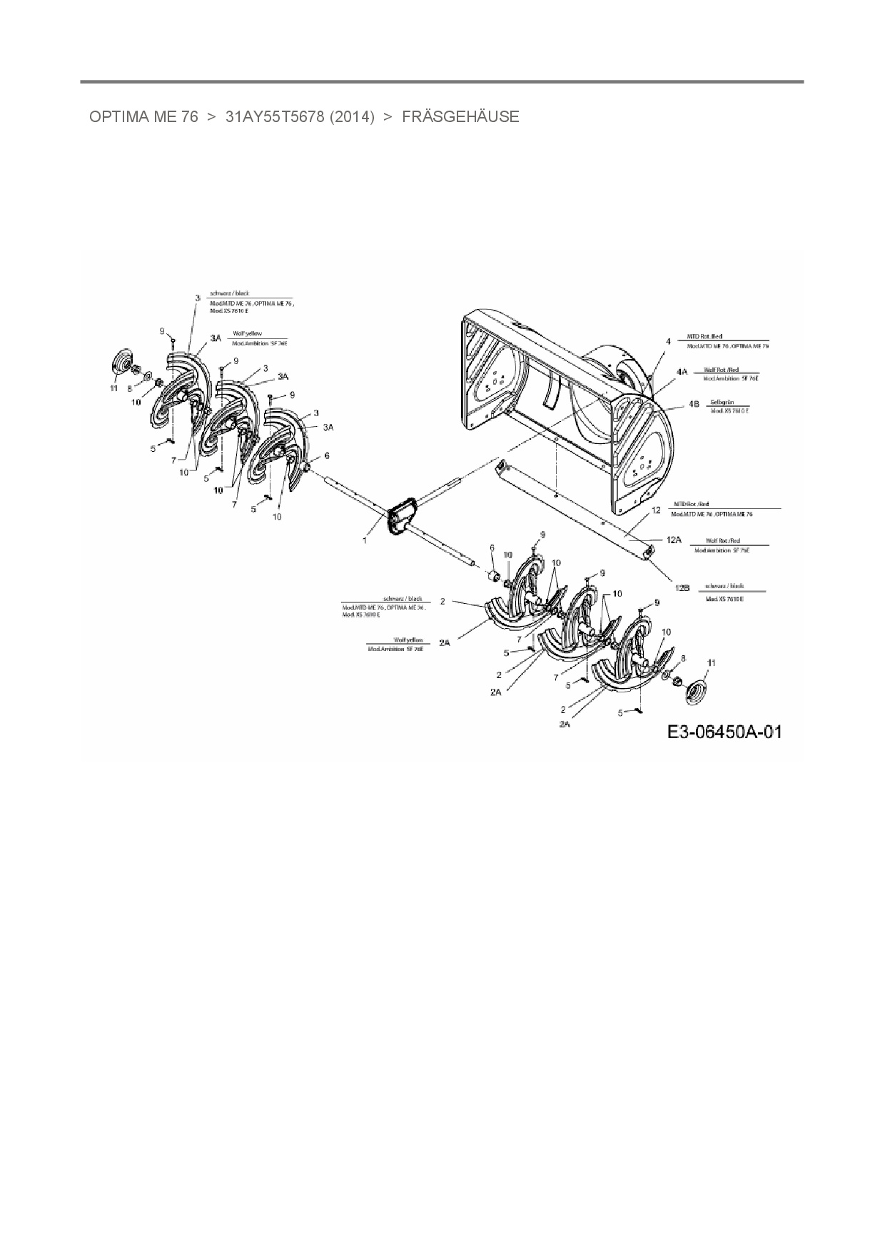 Ersatzteile für Schneefräse MTD Optima ME 76 aus der Zeichnung Fräsgehäuse: