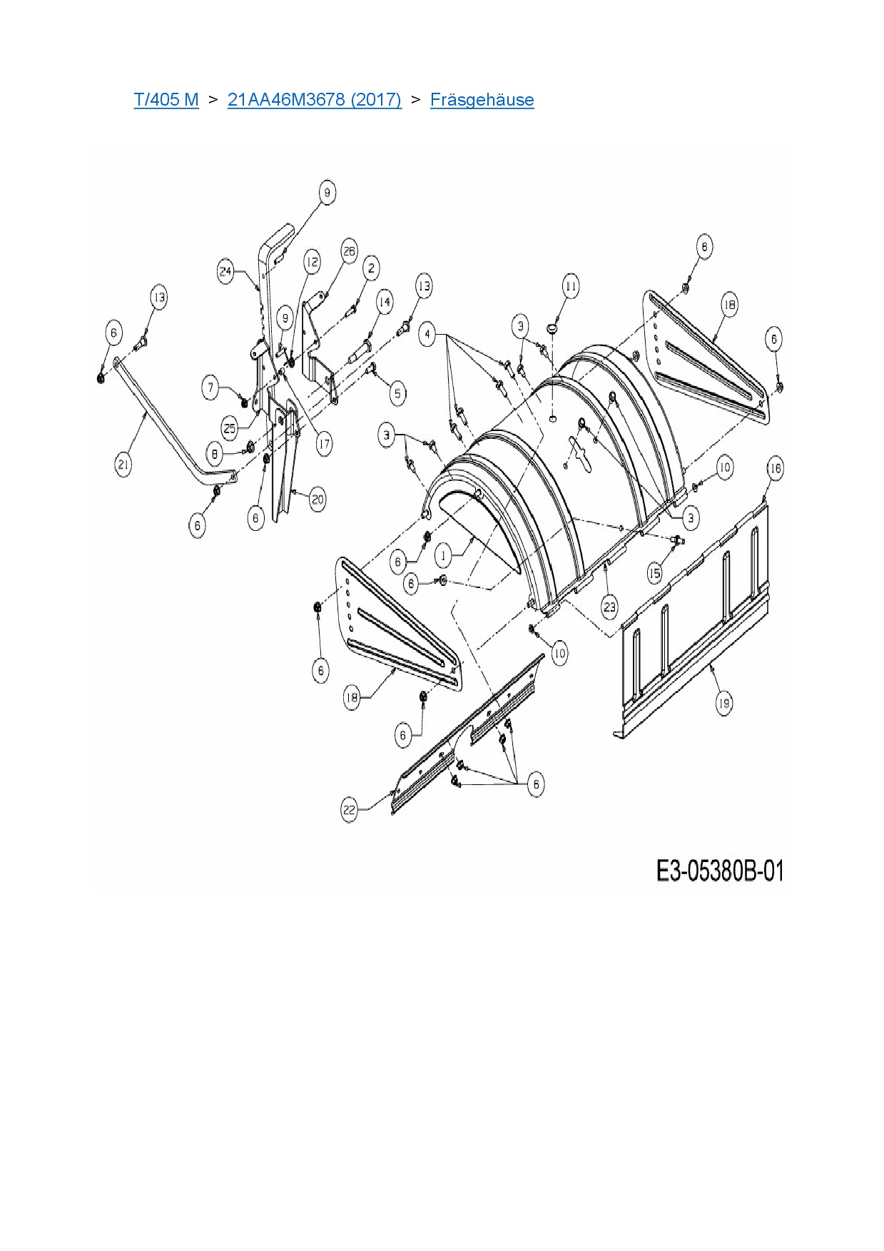Ersatzteile für Motorhacke MTD T/405 M aus der Zeichnung Fräsgehäuse: