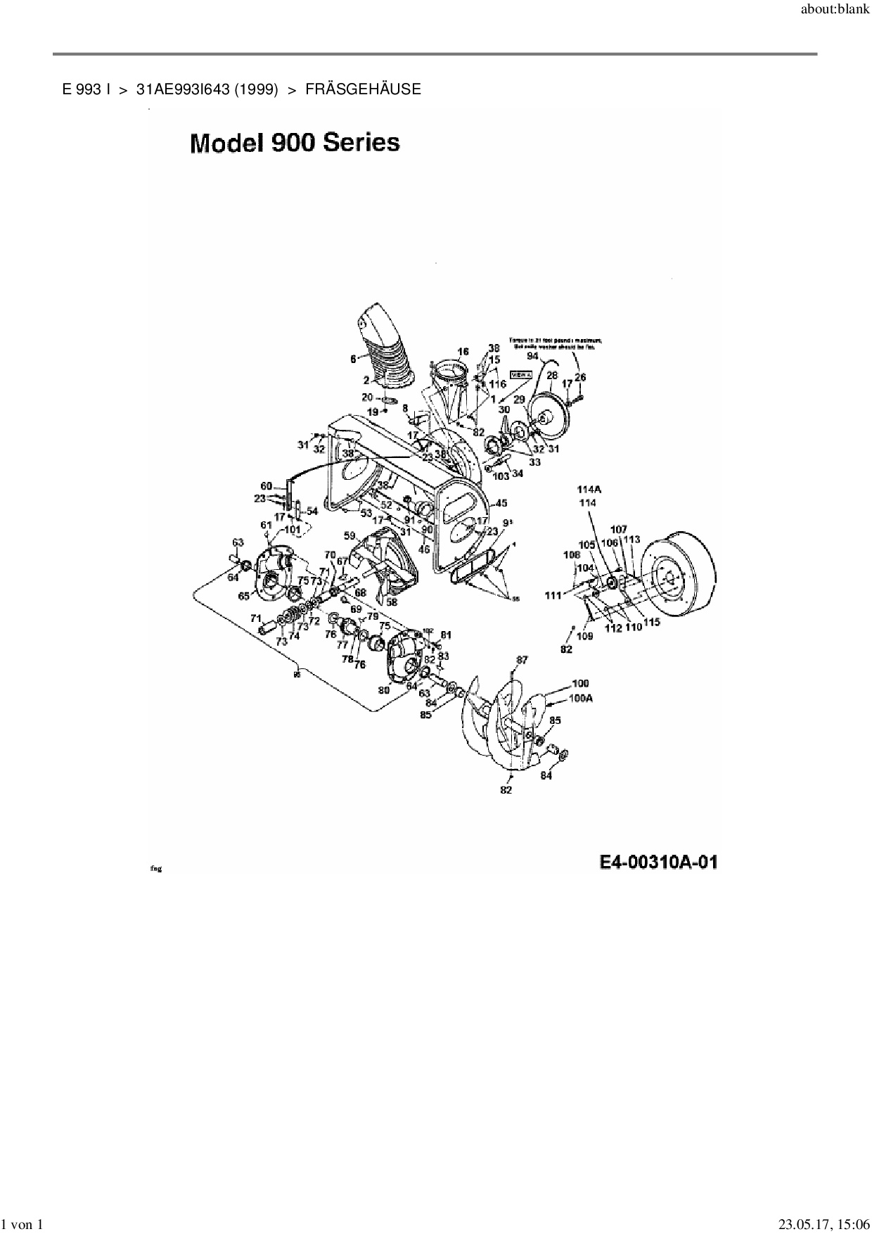 Ersatzteile für Schneefräsen Yard-Man E 993 I aus der Zeichnung Fräsgehäuse: