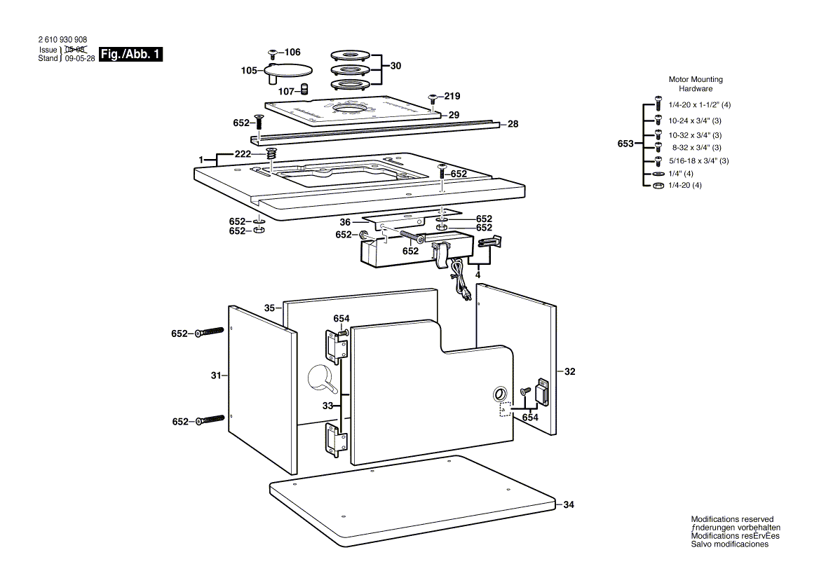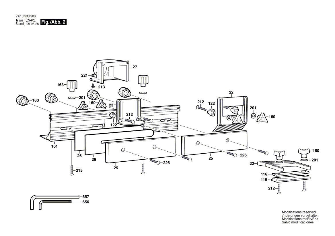 Zeichnungen von Bosch Frästisch RA1171 mit der Geräte-Artikelnummer 2 610 930 908