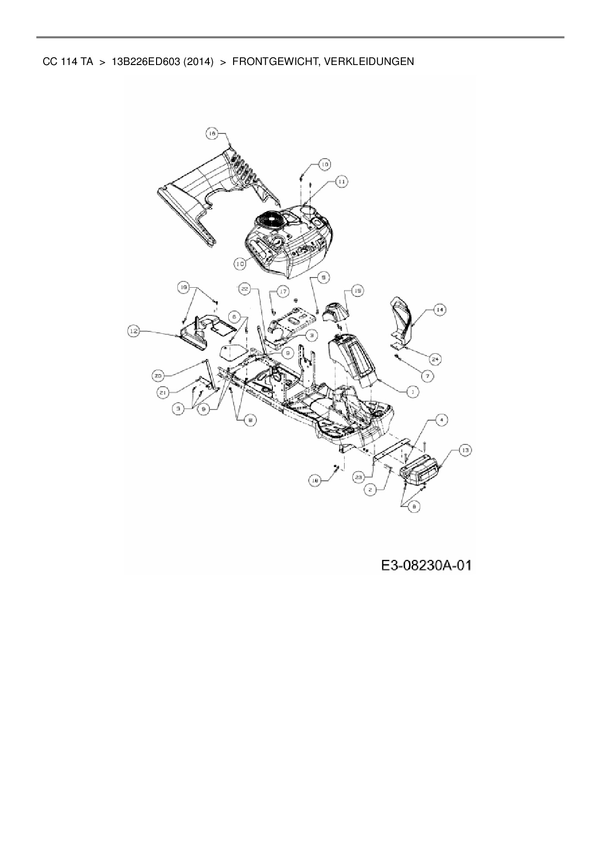 Ersatzteile für Rasentraktor Cub Cadet CC 114 TA aus der Zeichnung Frontgewicht, Verkleidungen: