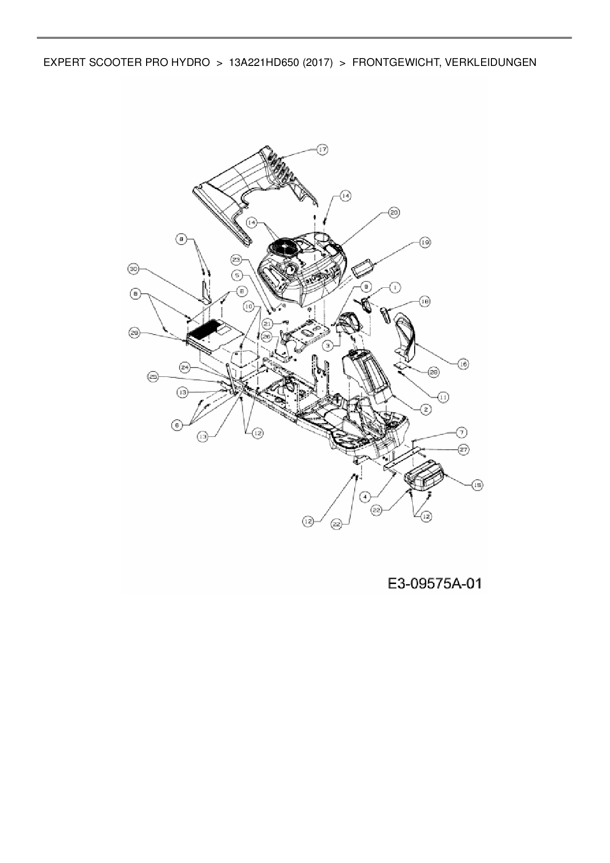 Ersatzteile für Rasentraktor Wolf-Garten Expert Expert Scooter Pro Hydro aus der Zeichnung Frontgewicht, Verkleidungen: