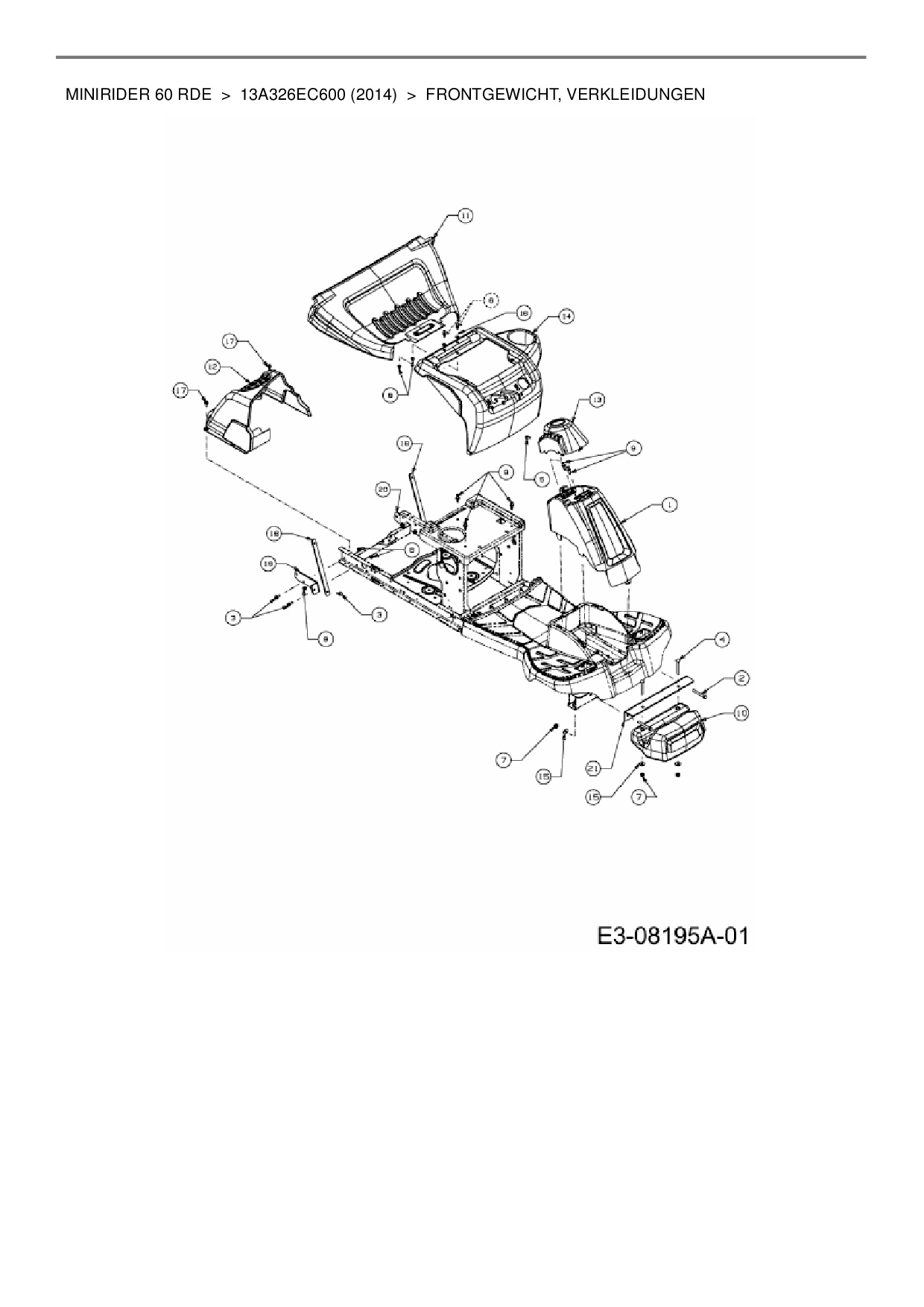 Ersatzteile für Rasentraktor MTD Minirider 60 RDE aus der Zeichnung Frontgewicht, Verkleidungen:
