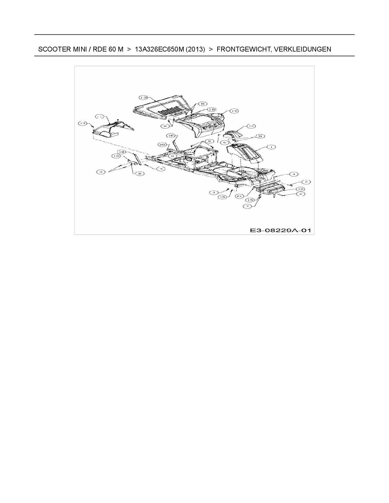 Ersatzteile für Rasentraktor Wolf-Garten Scooter Mini / RDE 60 M aus der Zeichnung Frontgewicht, Verkleidungen: