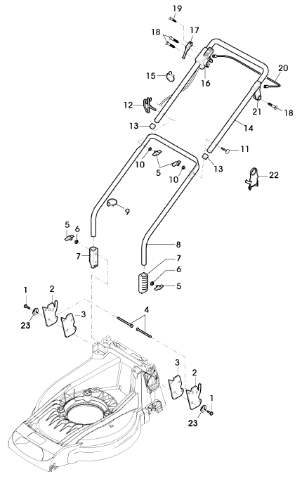 Zeichnung Sabo Rasenmäher Elektro-Rasenmäher 40-EL SPIRIT EDV-NR.SA336 Führung, Anlasser, Schaltgestänge: