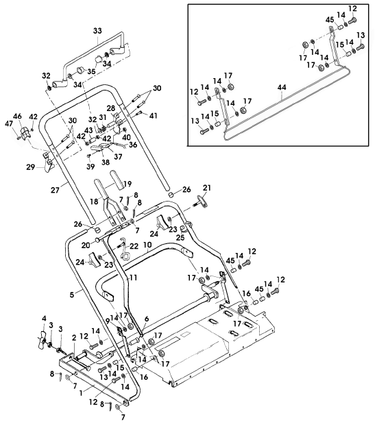Zeichnung Sabo Vertikutierer Benzin Vertikutierer 45-220 EDV-NR.SA268 Führung, Anlasser, Schaltgestänge: