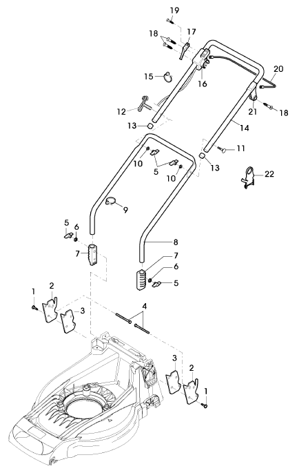 Zeichnung Sabo Rasenmäher Elektro-Rasenmäher 40-EL SPIRIT EDV-NR.SA1029 Führung, Anlasser, Schaltgestänge: