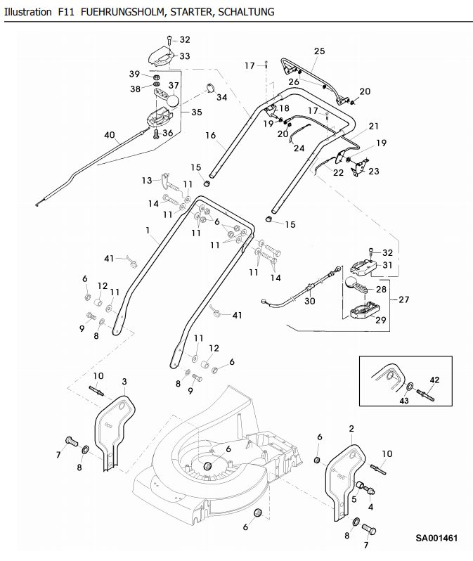Zeichnung Sabo Rasenmäher Profi-Rasenmäher 52-PRO VARIO EDV-NR.SA274 Führung, Starter, Schaltung: