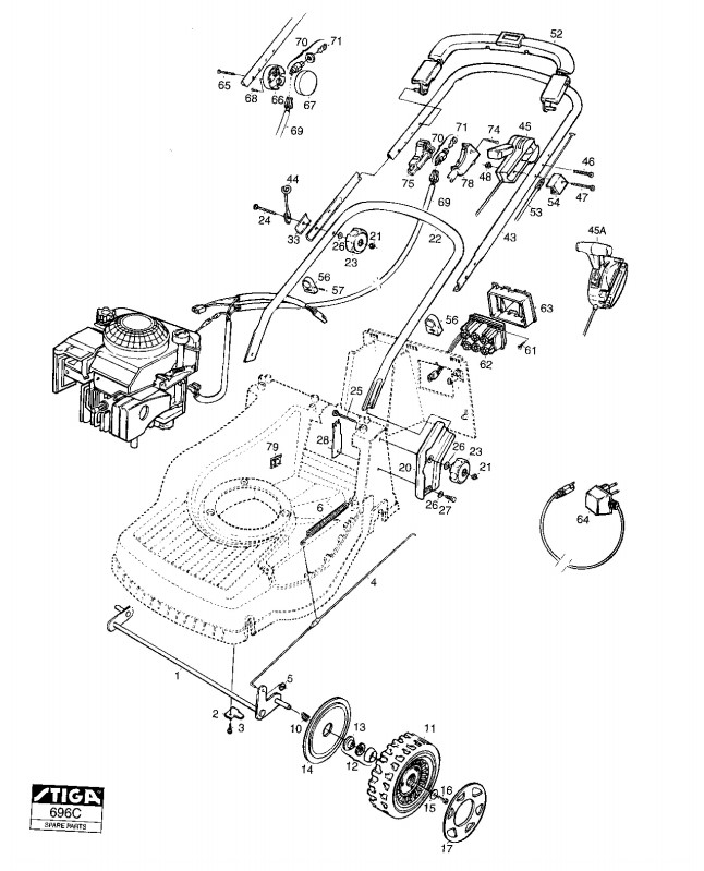 Zeichnung von Stiga Benzin-Rasenmäher ab 2000 Turbo 55SE 4-Speed (Geräte Nr 12-9489-15):