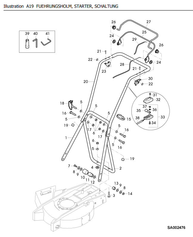 Zeichnung Sabo Rasenmäher Profi-Rasenmäher 52-PRO S A PLUS EDV-Nr.SA276 Führungsholm, Starter, Schaltung:
