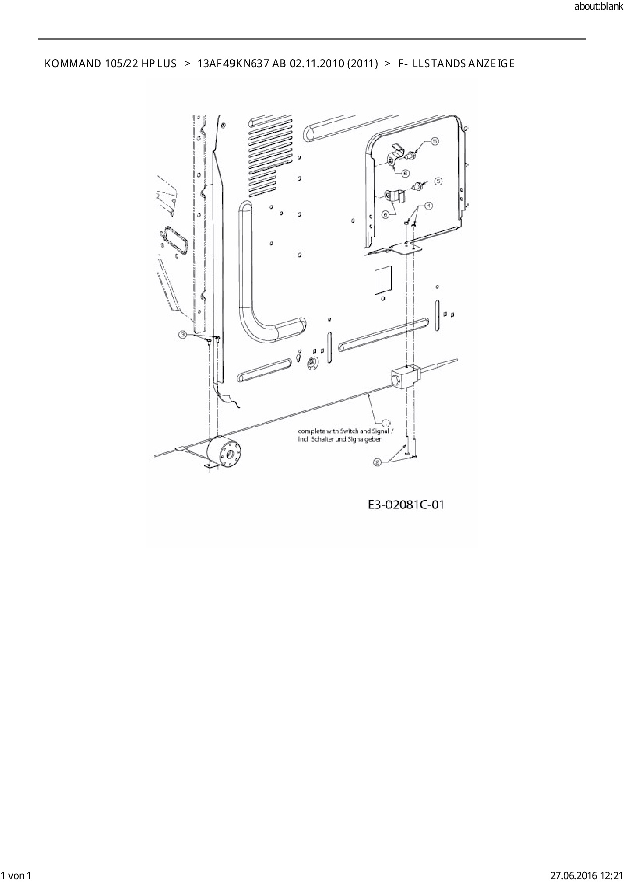 Ersatzteile für Rasentraktor EFCO Kommand 105/22 HPlus aus der Zeichnung Füllstandsanzeige: