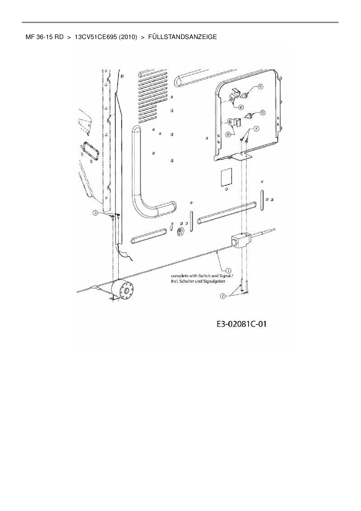 Ersatzteile für Rasentraktor Massey Ferguson MF 36-15 RD aus der Zeichnung Füllstandsanzeige: