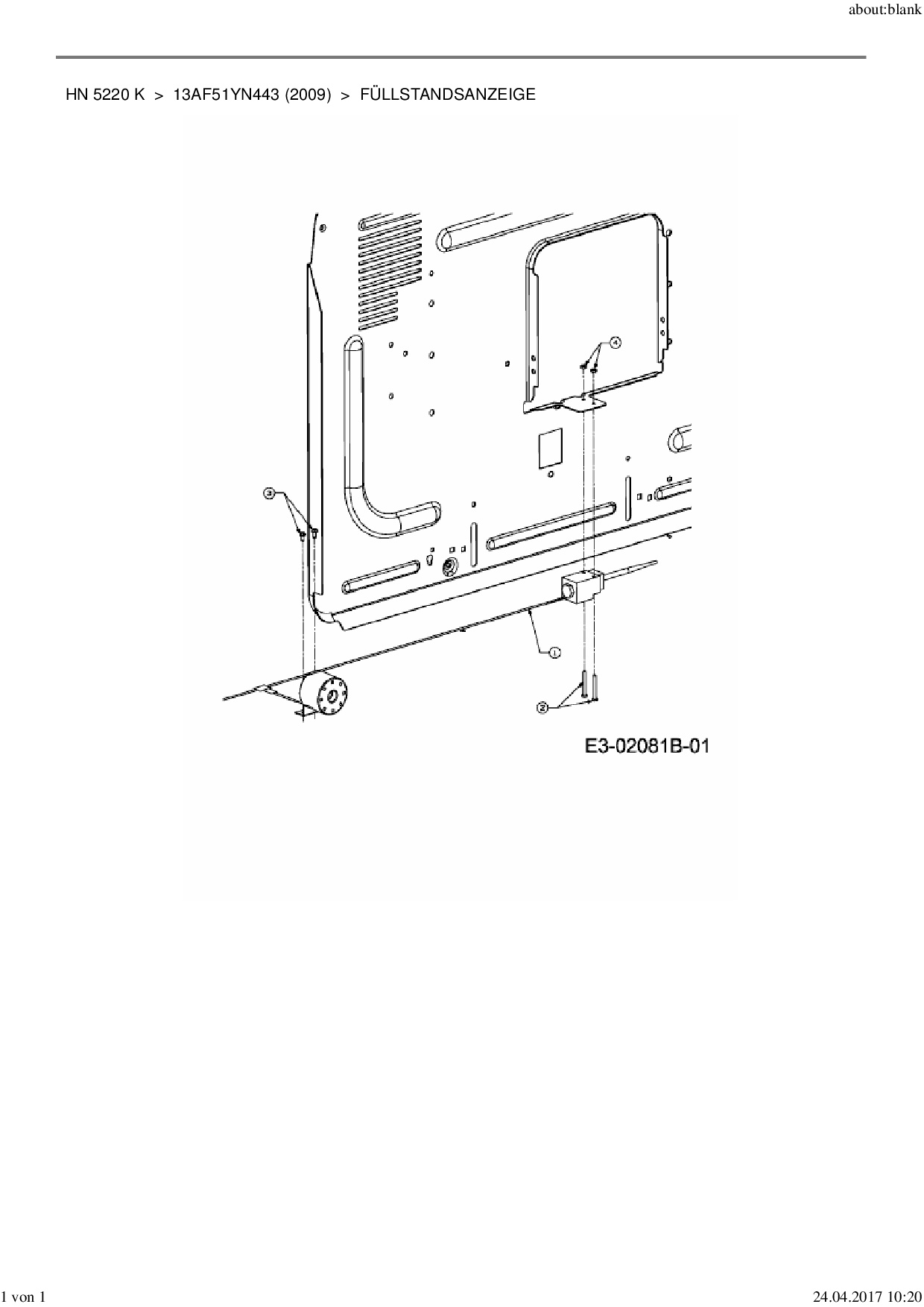 Ersatzteile für Rasentraktor Yard-Man HN 5220 K aus der Zeichnung Füllstandsanzeige: