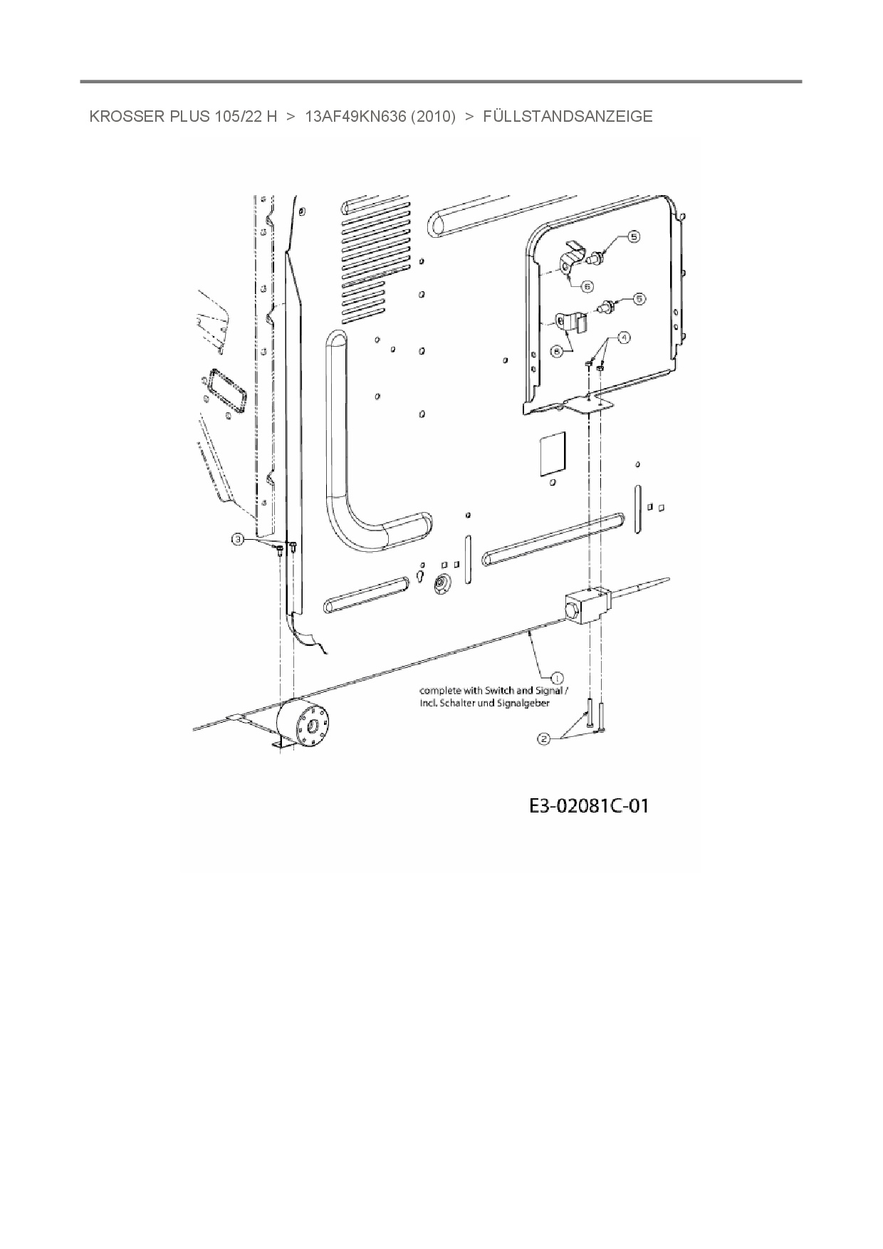 Ersatzteile für Rasentraktor Oleo-Mac Krosser Plus 105/22 H aus der Zeichnung Füllstandsanzeige: