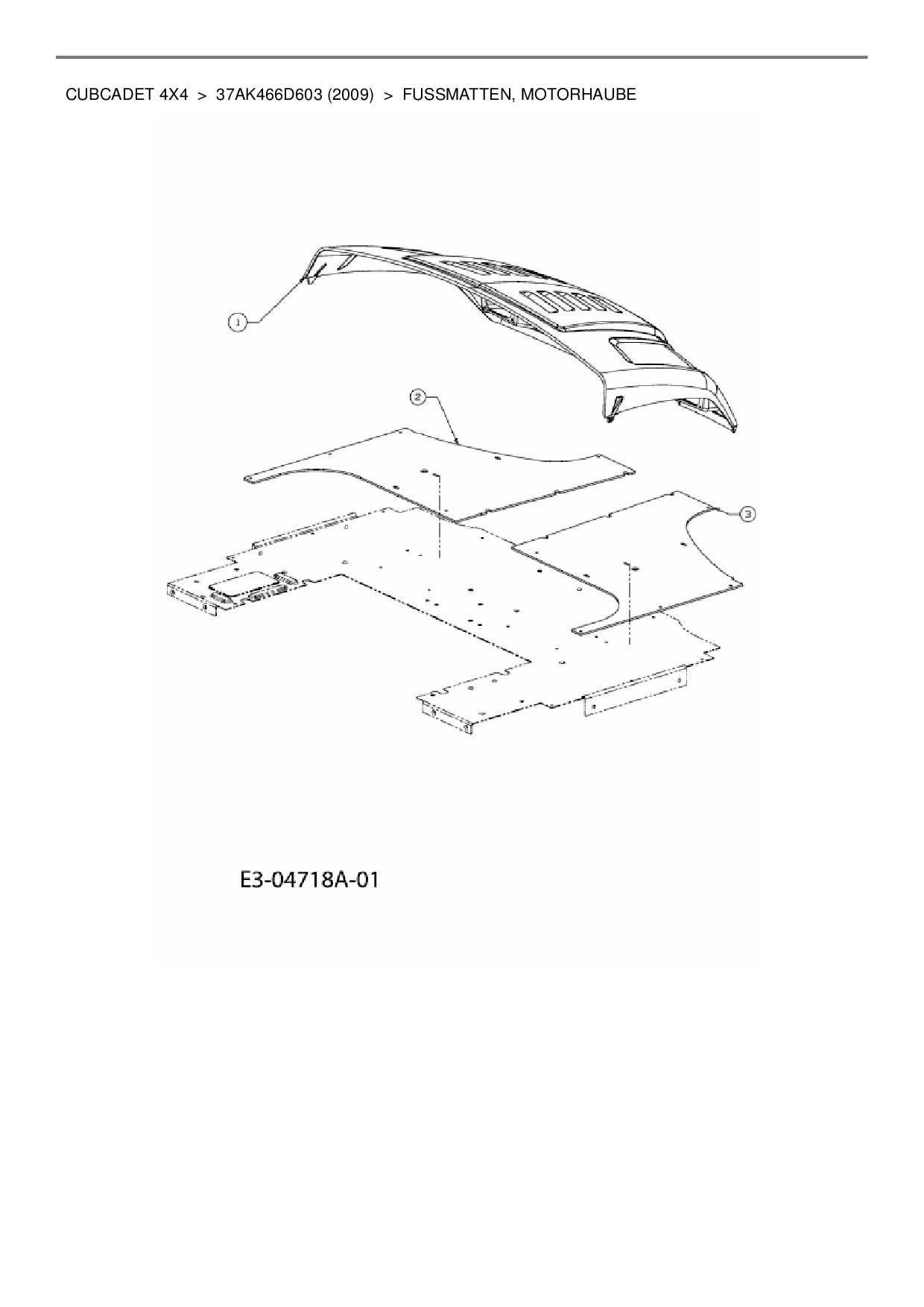 Ersatzteile für Utility Vehicle Cub Cadet CubCadet 4X4 aus der Zeichnung Fußmatten, Motorhaube: