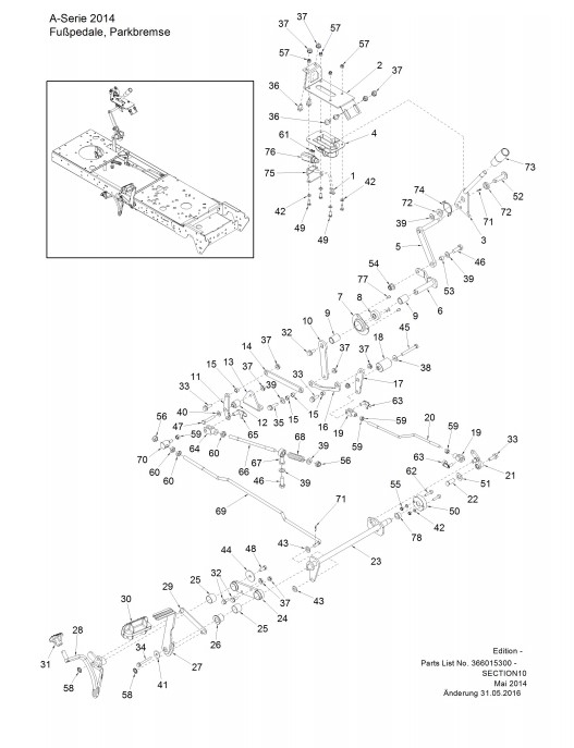 Zeichnung von ECHO-Motorgeräte Rasentraktoren A-Serie A-426KAWA-4WD Bj. 2016 Fußpedale, Parkbremse:
