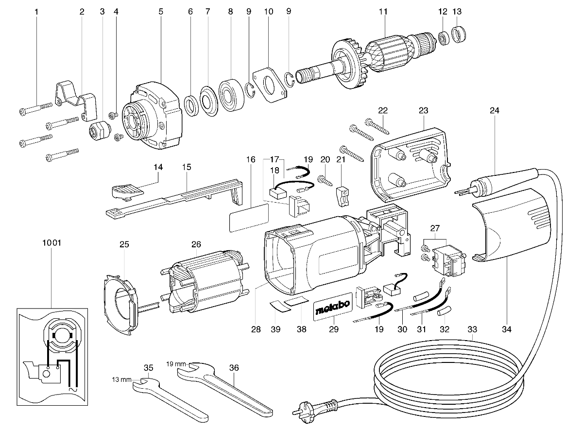Zeichnung 1 Sollten Sie Fragen zu einem Ersatzteil von Metabo G 500 Geradschleifer 606301380 haben, können Sie uns gerne eine E-Mail (mit einem Foto vom Typenschild Ihres Gerätes) schreiben oder eine Ersatzteilanfrage stellen.
