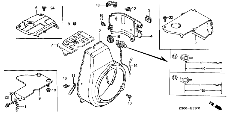 Ersatzteile für Honda Motoren G100 W (W) Baugruppe GEBLAESEABDECKUNG (1)