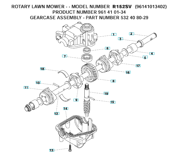 Folgende Ersatzteile für Husqvarna Rasenmäher private Nutzung R152SV ( 96141013402, 2008-02 ) GETRIEBEGEHÄUSE können Sie hier bestellen: